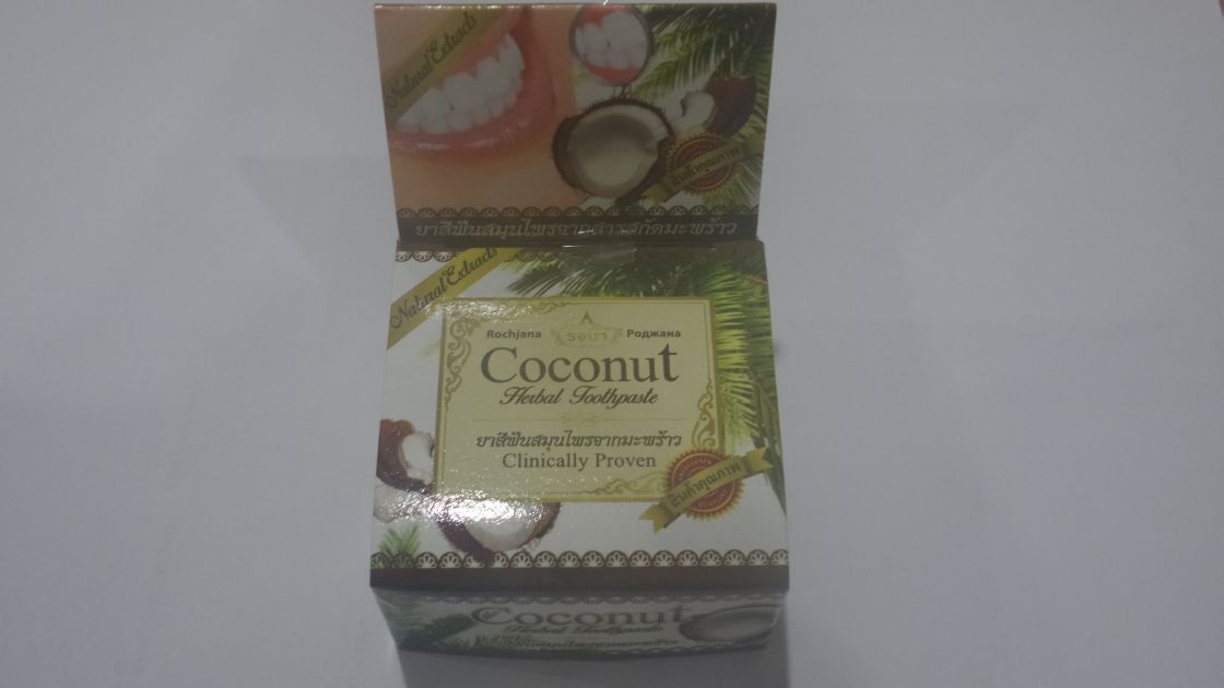 Отбеливающая твердая зубная паста от тайских производителей с экстрактом кокоса эффективно осуществляет уход за ротовой полостью.